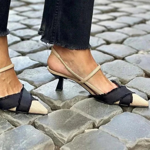 Women’s Stiletto Heel Color Block Pointed Sandals