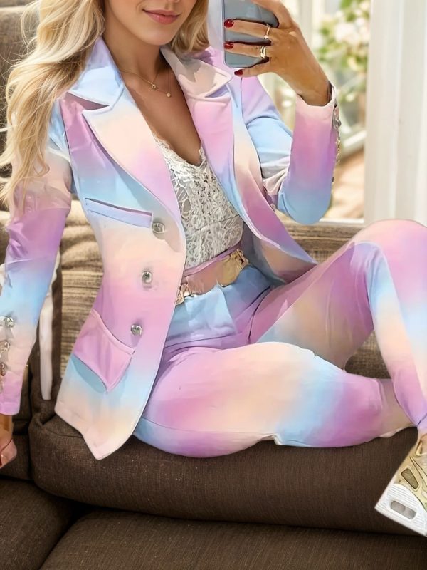 2025 Gradient Color Elegant Suit Jacket Set, Women’s Suit Pants Set, Double Breasted Flip Leader Suit Jacket And Pants Clothing, Fashionable Women’s Clothing