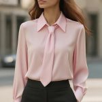 This sophisticated top features a  classic notch lapel collar  and an  elegant attached tie  that adds refined detail to your outfit. The  smooth 100% polyester fabric  offers a luxurious drape with wrinkle resistance, ensuring you maintain a polished appearance all day. The  long sleeves  with  button cuffs  provide versatile styling options, while the  tailored fit  allows for easy tucking into skirts or pants. Designed for convenience, this blouse is  machine washable  and quick-drying, making it ideal for busy professionals. Available in sizes  S-XXL  to ensure the perfect fit for various body types.