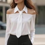 Be the first to review “Women’s Solid Color Long Sleeve Shirt With Tie And Lapel Collar, Casual & Elegant Blouse For Office And Formal Wear”